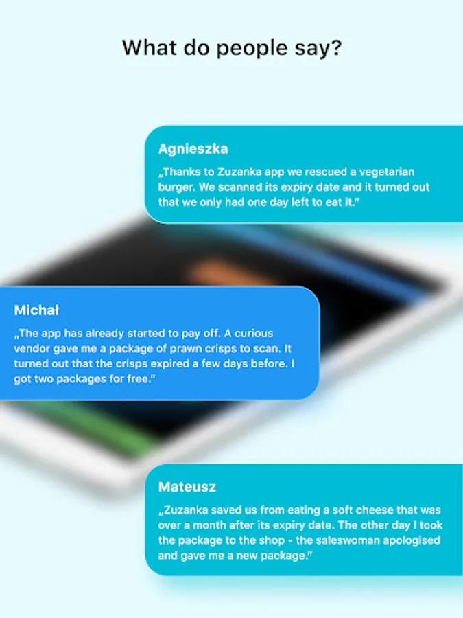 Having trouble finding the expiration date on the packaging? Can't see the small font that the date is written in? Do you want to check if the product in your fridge is still edible? The Zuzanka app is for you!
