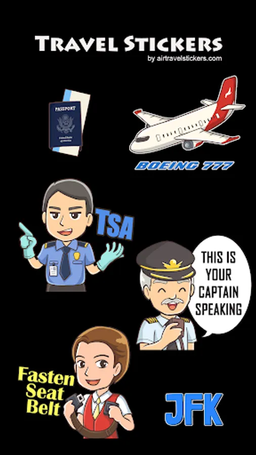 User the best crafted stickers and emojis to share your air travel. Over 80 situations and more being added each week.