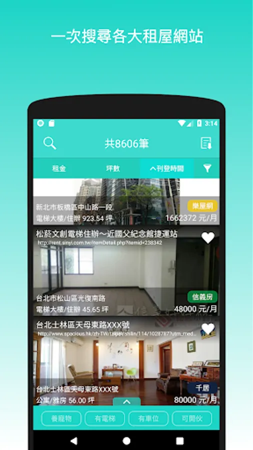 ● 租屋 APP 不支援跨區選擇,還不能用刊登時間排序!
