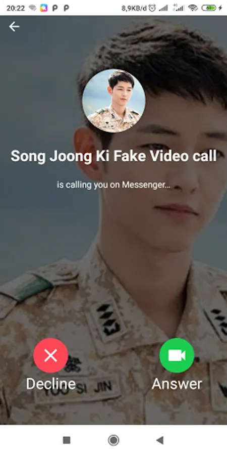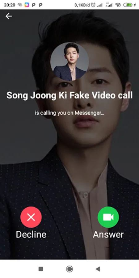 Song Joong Ki call you is a fake video call and voice call application that is designed to look like the real thing. with this application you can do video call hallucinations with Song Joong Ki.
