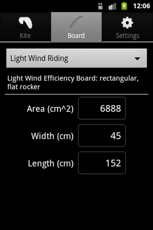 Windsurfing Calculator allows calculating windsurfing and kitesurfing equipment (sail, board, fin, kiteboard and kite size) based on the sailor weight, board type and wind speed. The app is a GUI wrapper of the famous Windsurfing and Kitesurfing Calculator of James Douglass. The app has no ads!