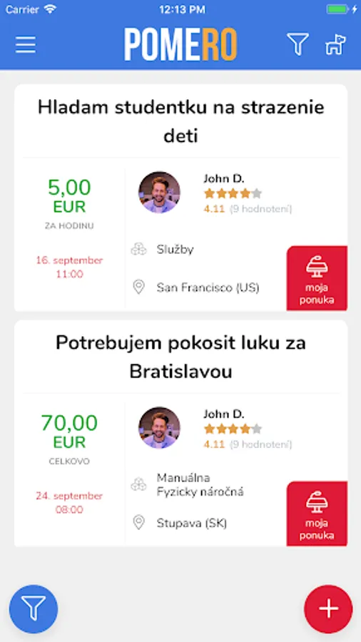 Pomero is an app for quick and easy job search. Are you offering or looking for part time job? Pomero is here for you! Couple clicks and you will find right help you need for your project. Lawn-mowing, moving, document organizing, stage - building, presentation, administration, ? Pomero requires only few clicks - create a client profile - and applicants will start contacting you. Pomero is easy way to make money by working part - time or one time project. You can filter job listings by cost of the labor, distance or the length of assignment/ project. See you there ! 👍🏼