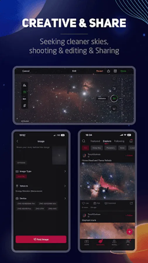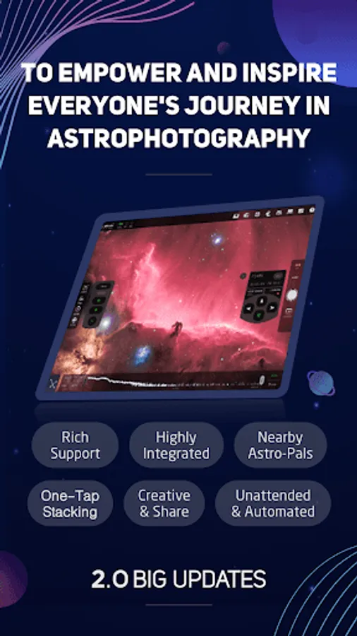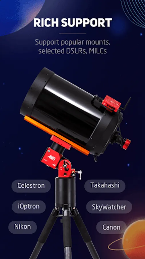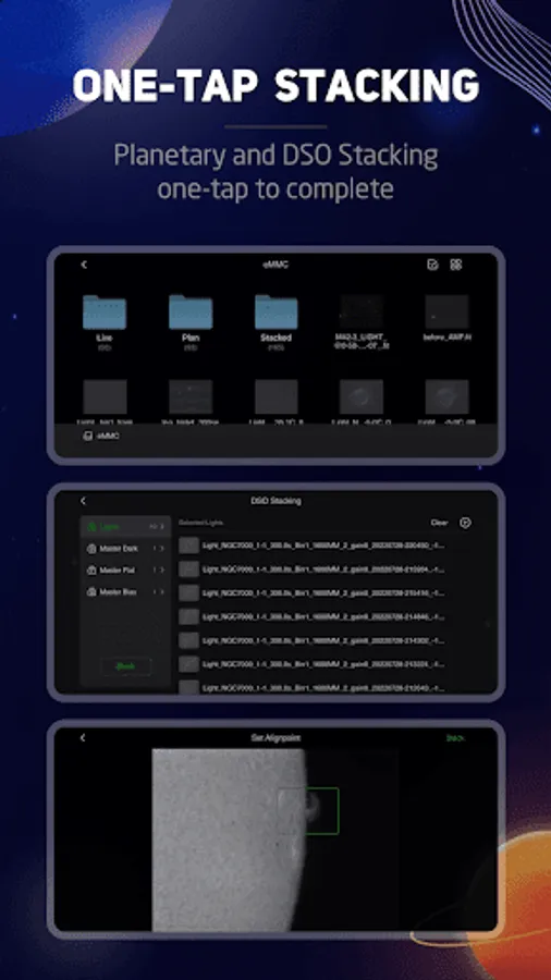 ASIAIR has SkyAtlas built-in. It can handle almost all DSO and Planetary imaging tasks. Such as preview, plate solve, auto-focus, polar-align, guiding, plan (multi-target, mosaic), video recording, live stacking, post-stacking, etc. You can even share and chat with global Astro-pals.