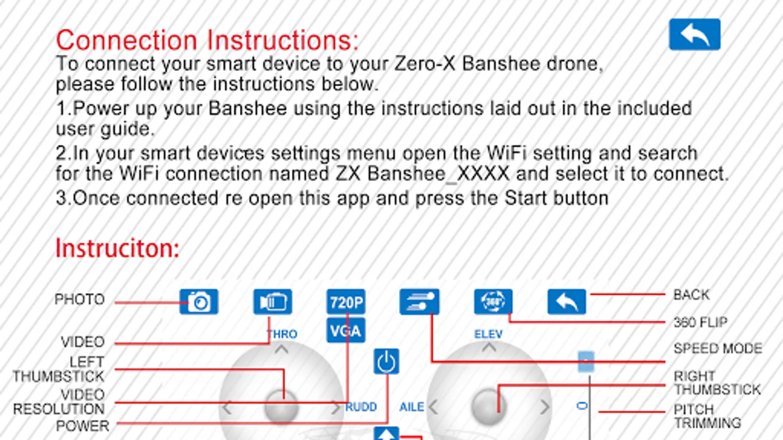 With the Zero-X Banshee App you can control your Banshee drone, as well as see the first person view (FPV), and watch video recorded with your Banshee drone.