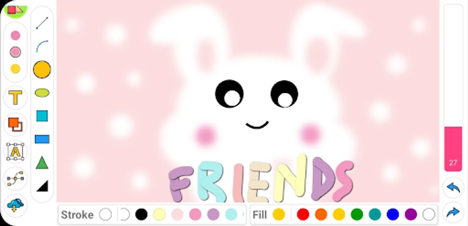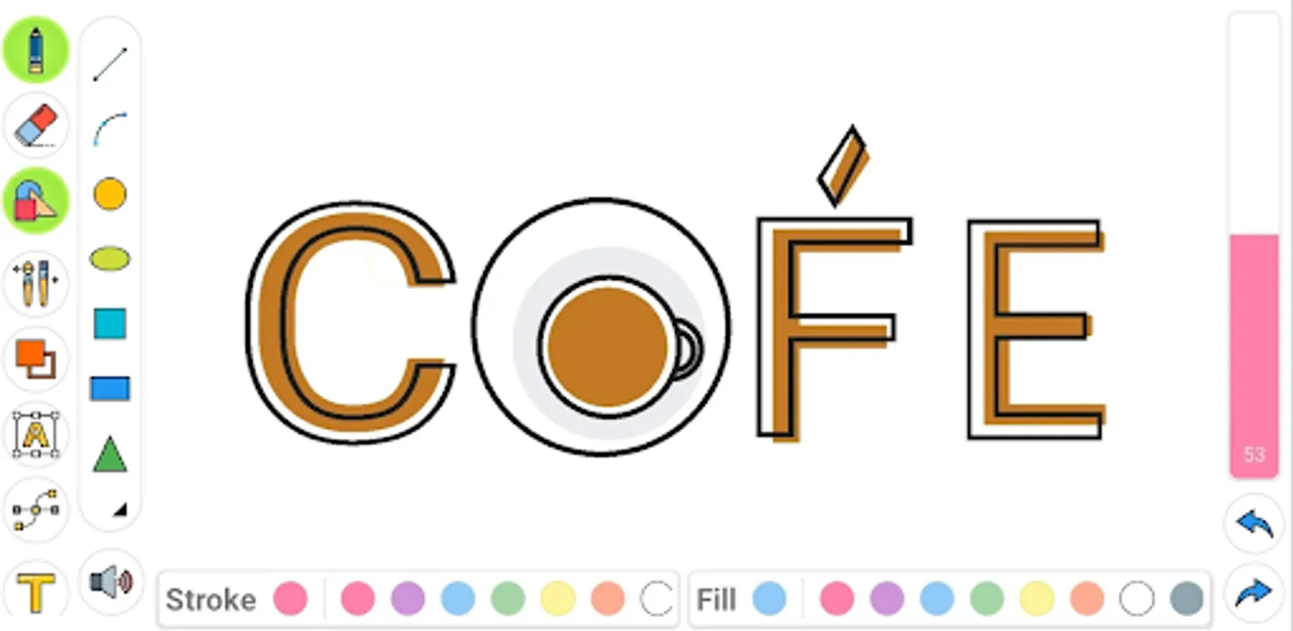 Choose if you want to draw the shape's stroke, fill, or both. You can have the colors of the stroke and fill be different. That's just one of the ways you can make use of drawing apps' features!