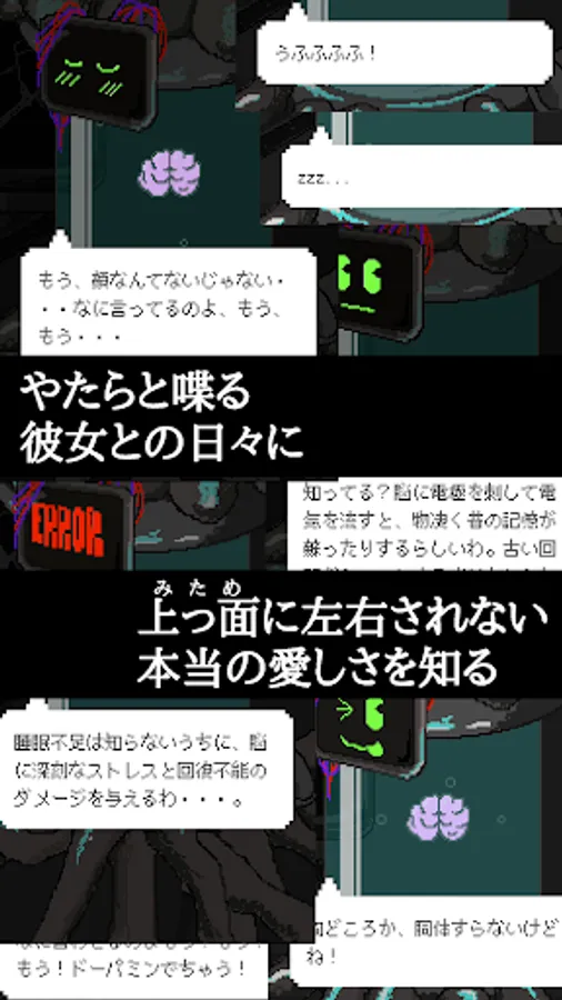 A distant future, a devastated world. There was a couple who lived in harmony with the abandoned underground laboratory. The two were ordinary couples everywhere, but the only difference from the others was ... my wife had only a brain.