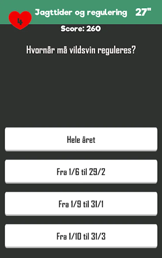 The JagtQuiz app is a perfect supplement to regular hunting lessons, as you test your knowledge against the missing multiple-choice questions.