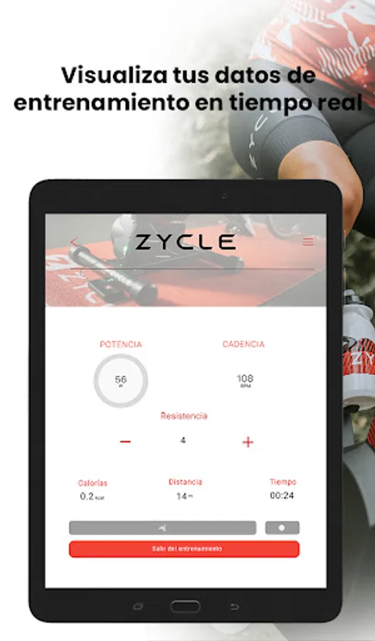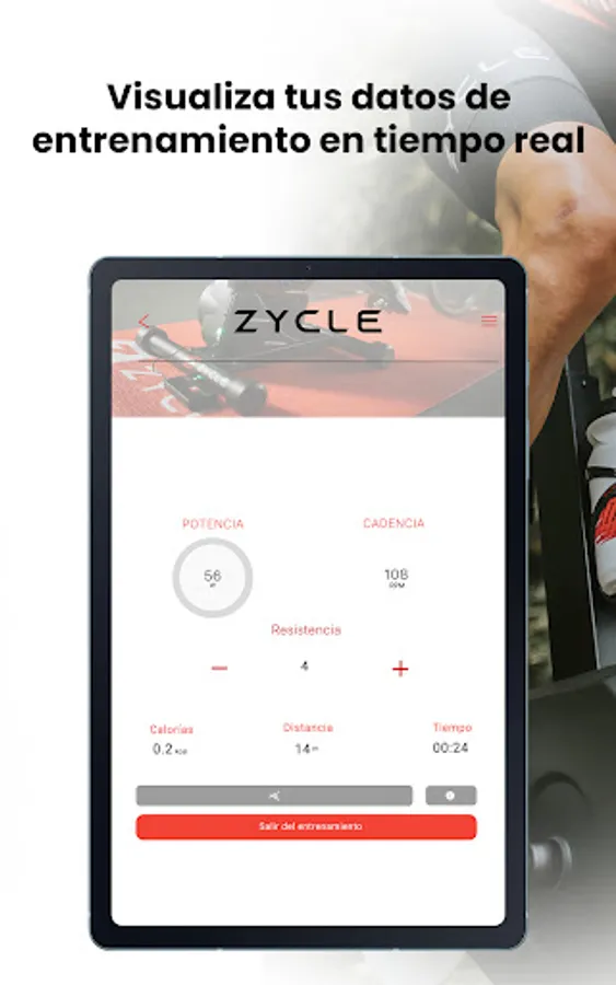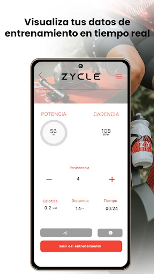 By installing the ZYCLE app on your tablet or smartphone, you can access your live metrics from the training tab. Our app for indoor stationary bikes and bike rollers provides you with real-time data on power and cadence. It also gives you information on calories burned, distance traveled, and session duration. Whether you want to use your smart bike for professional cycling or fitness, the data provided by the ZYCLE app will help you enhance your cycling workouts and fitness sessions with valuable information while you exercise. You can easily and intuitively adjust resistance, increasing or decreasing the intensity of your workout.