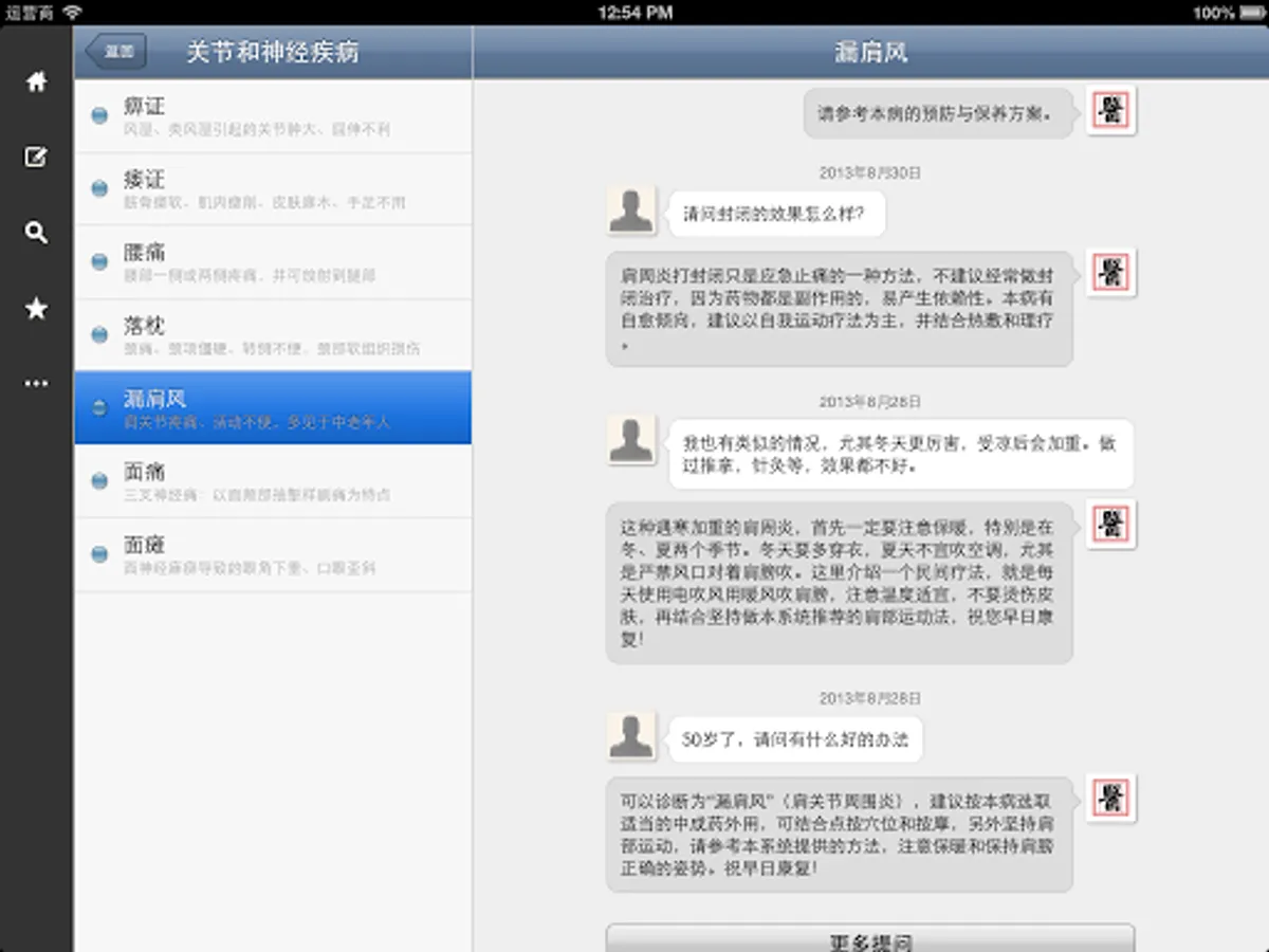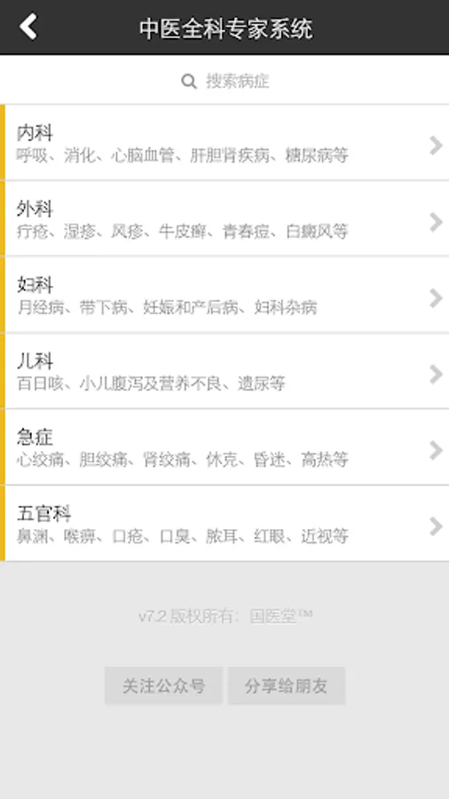 中医师、针灸推拿从业者、相关专业在校大学生、具有一定基础的中医爱好者可使用本系统。全科含内、外、妇、儿、急症等数百个临床病种、数千个中药方剂、中成药处方和验方。根据患者主诉对应相关病症,如实选择列表中的症候及舌象、脉象等信息,即可由系统自动完成辨证施治过程。软件采用模糊数学原理和贝叶斯理论创建中医证候知识库,由主症入手,四诊合参,建立中医辨证推理模型,模拟真实环境下的中医辨证施治过程,以人工智能的表达方式给出中医辨证结果和理法方药,提供传统方剂、现代中成药、针灸、指压、耳针、头针、水针、电针、刮痧等多种处方组合和中医调理、健康养生的内容。中成药处方涵盖了国家基本药物目录和临床常用OTC非处方类药品,包含药品图片、配方组成、用药说明、生产厂家、周边药店等实用信息;穴位采用世界卫生组织标准经穴定位,包括精美的穴位定位图和详细说明,如穴位来源、取法、主治、刺灸法、指压法、现代临床研究等专业信息;可灵活依据不同患者的症候及个体差异,自动进行处方加减;如果患者因症候冲突或缺少导致辨证参数不足,将提示重新进行选择;只有当症候组合满足必需的辨证条件后,才会给出辨证施治结果;否则,将不予辨证,以杜绝误诊和漏诊;提供智能搜索功能,普通用户既使输入非专业的术语和名词,也能找到相应的病症;采用云计算技术设计和建立了后台知识库及运营管理系统,专业的IDC集群服务器可保证医疗大数据的实时处理与分析,同时也便于升级、维护和扩充。