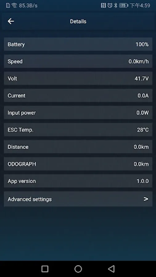The application can connect the electric scooter, set the parameters, upgrade the firmware, and read the real-time speed, electricity, voltage and other information of the vehicle.