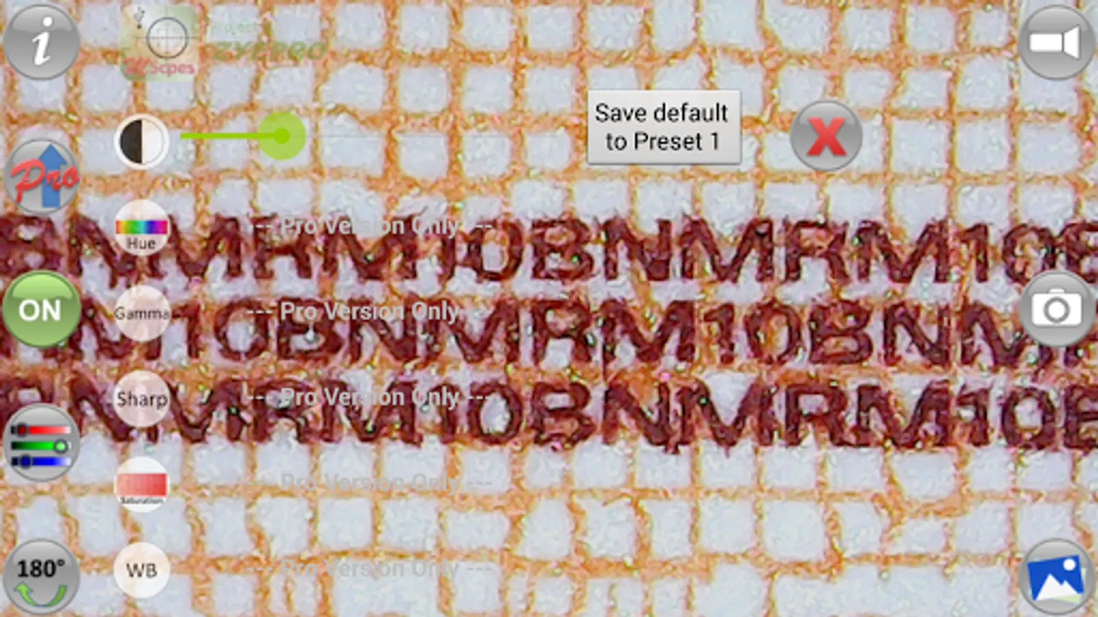 If you find this free USB camera app useful, please explore "MScopes Pro" which has added features such as full screen without buttons, watermark free, pinch zoom and pan, camera resolution changes, adjustable color parameters, presets, support for PNG image type, cross-hair, etc.