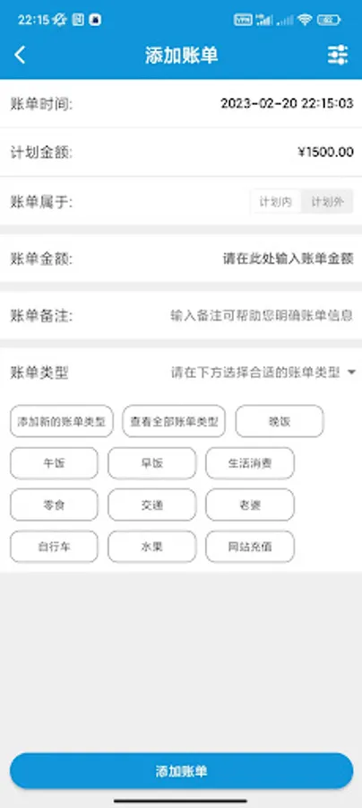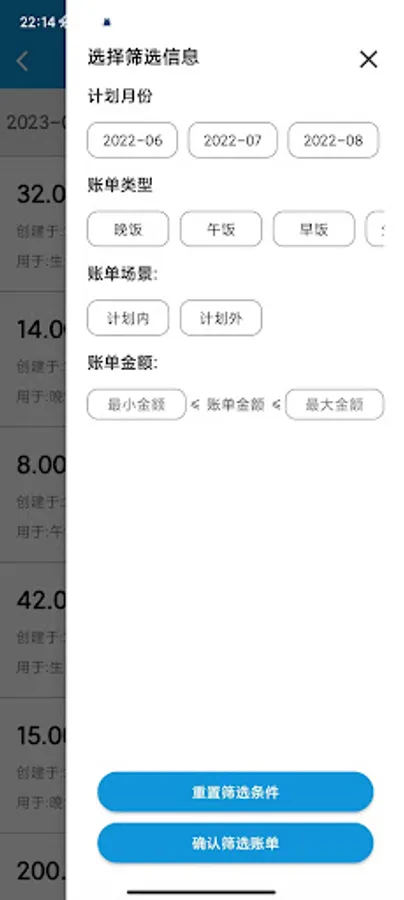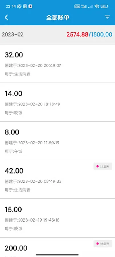 The app expects to help you manage your bills in a planned way. At the beginning of each month, you need to add a consumption plan for the current month, and then we hope that you can save the consumption information to the app as soon as possible after consumption. This application provides you with the functions of saving, viewing, modifying, filtering and other bills. You don't need to worry about your data being leaked, because the application does not have any network operations, and all data is stored in your mobile phone's local database.