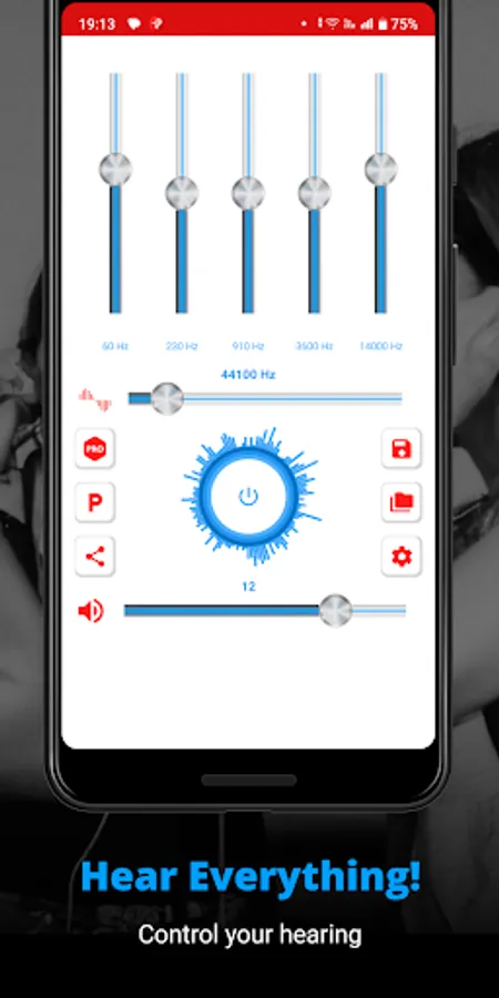 Start up the application and plug in a headset. Press the power on button, to start hearing the world around you. Use the equalizer for fine tuning, and use the options button to reduce noise and echo.