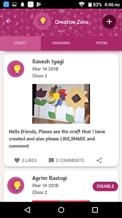 - Creative Zone : Get your paintings, poems or craft work posted and get the appreciation they deserve.