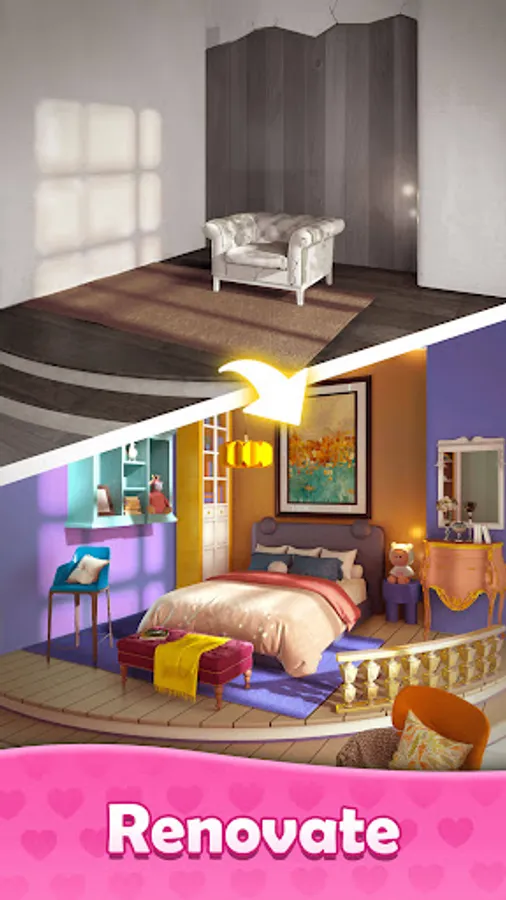 Renovate and design the rooms and give them back their glory! As soon as you finish an area, you can open up a new one.
