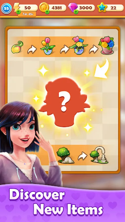 Your game board has full of surprises and unique items! Discover new and valuable tools by merging your items.