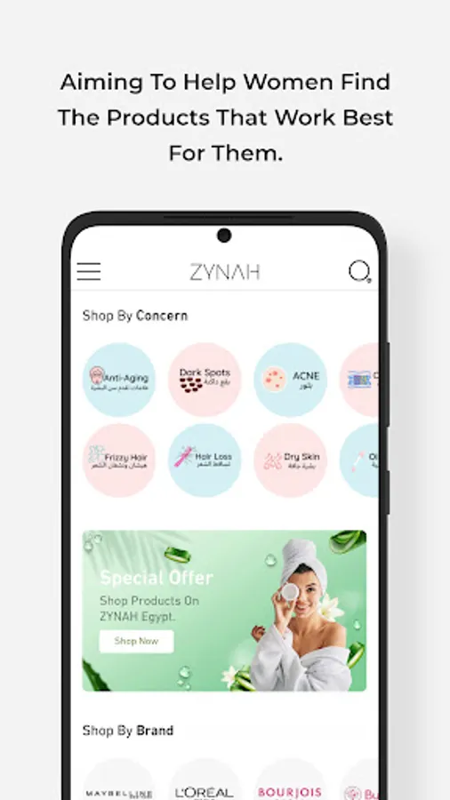 Shop on Zynah.me all types of beauty products, skincare, hair, makeup, accessories and clean beauty with the best quality and affordable prices. Powered by Fustany.com, Zynah.me aims to help you find the beauty products that work best for you, saving you both time and money, through asking beauty experts on the spot, detailed filters, customized beauty bundles according to your needs, recommending what works best for your own preferences, content, quizzes and much more through the perfect mix of top notch local and international brands.