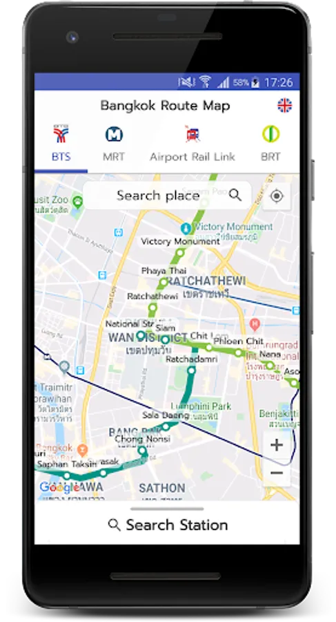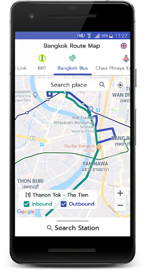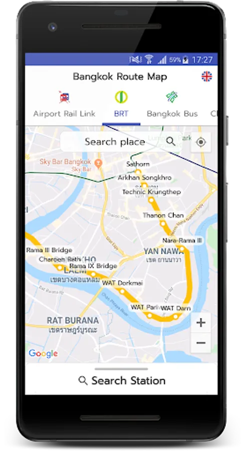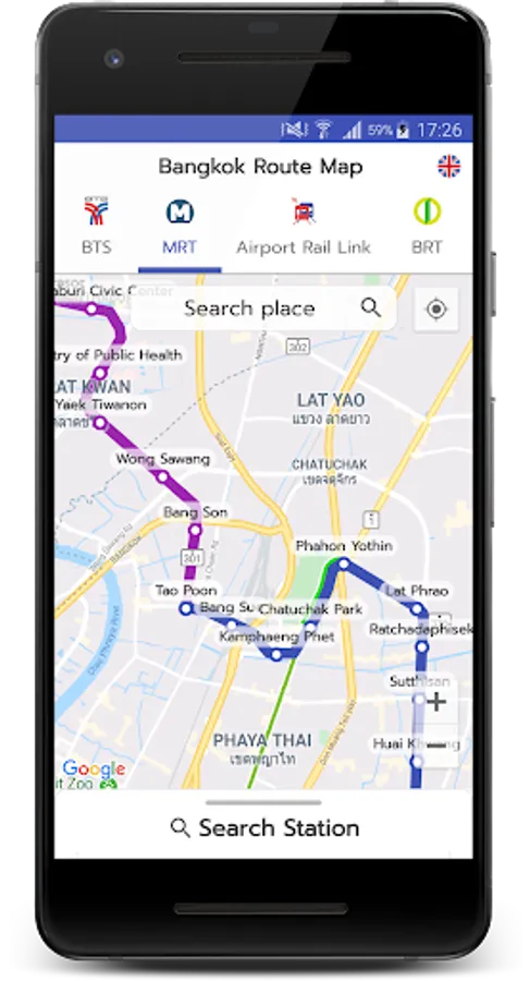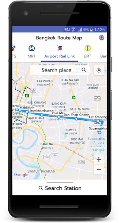"Bangkok Route Map" You can search for various routes in Bangkok Thailand within one app.