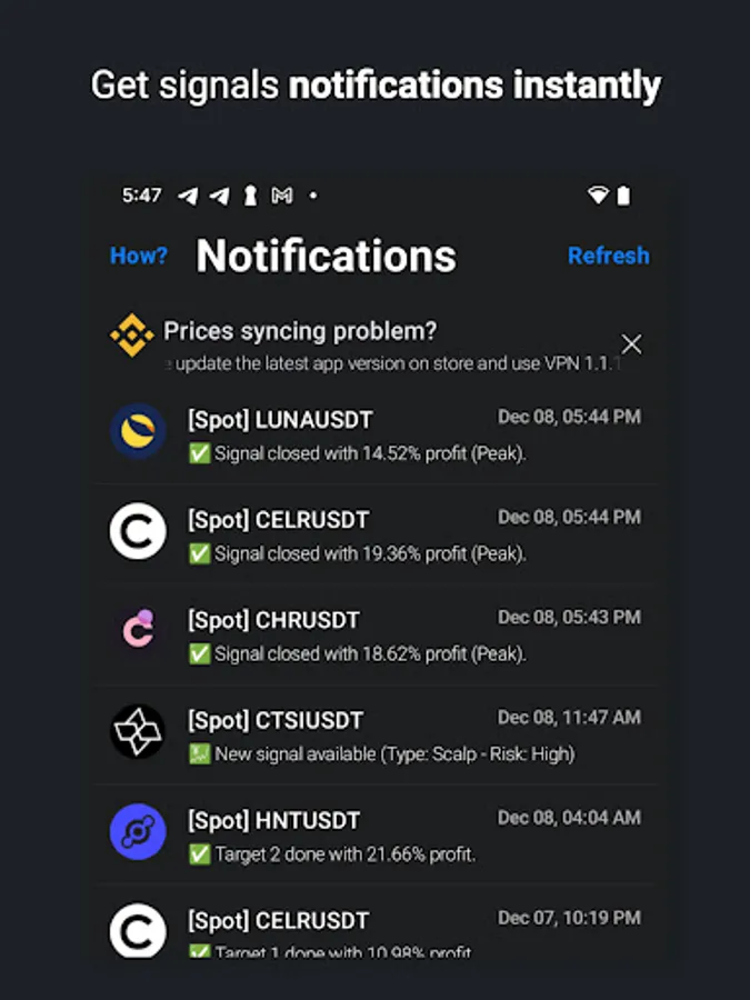 Signal - Crypto will serve to notify you on the best moment to buy alts and btc for the maximum profit. You will be saved the trouble of researching, the flaw of guessing and missing out on the cryptocurrency.