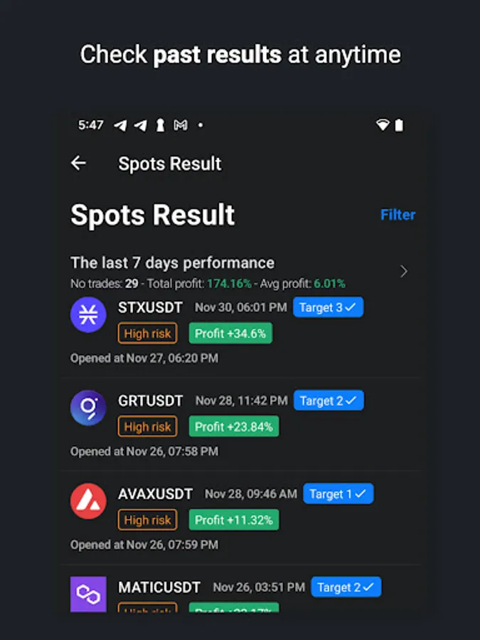 We use our own detective bot with strong TA/FA to find the best coins & tokens to giving signals.