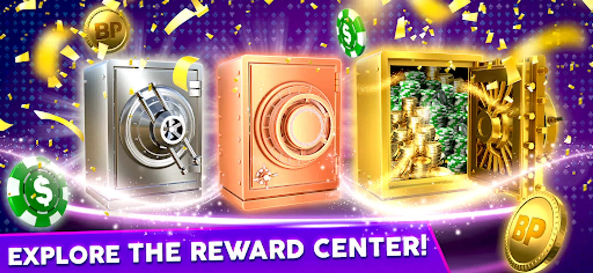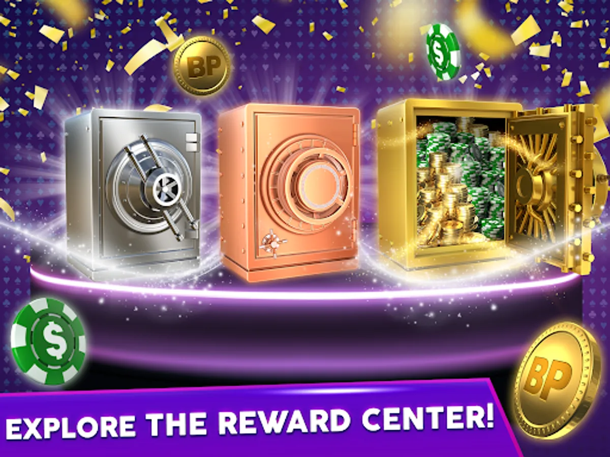 Get your welcome bonus, come back everyday to collect many more prizes with free spin and daily bonus, go to the Reward Center to open bronze, silver, gold vaults full of huge rewards.
