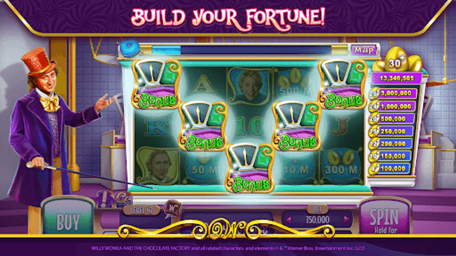 Willy Wonka Slots is your lucky ticket to a FREE casino-style slot machine game. Zynga brings you these ultimate exciting free slots games to enjoy an authentic Las Vegas experience with the iconic cast of Willy Wonka and the Chocolate Factory movie!