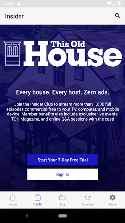 The free This Old House app features 1,400+ full episodes –– with new ones added weekly –– streaming to your TV, tablet or phone. Upgrade to Insider for ad-free viewing, and to unlock every episode in the archive.