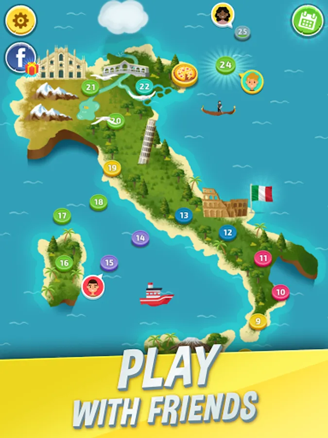 Enjoy your journey around the world and find the hidden treasures. Sign into Facebook to compete with friends and track their progress.