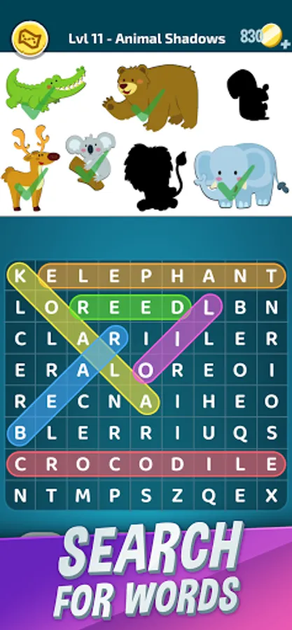 4. Word Search: Search for words on a grid of letters based on a collection of images.