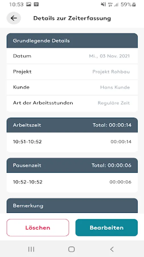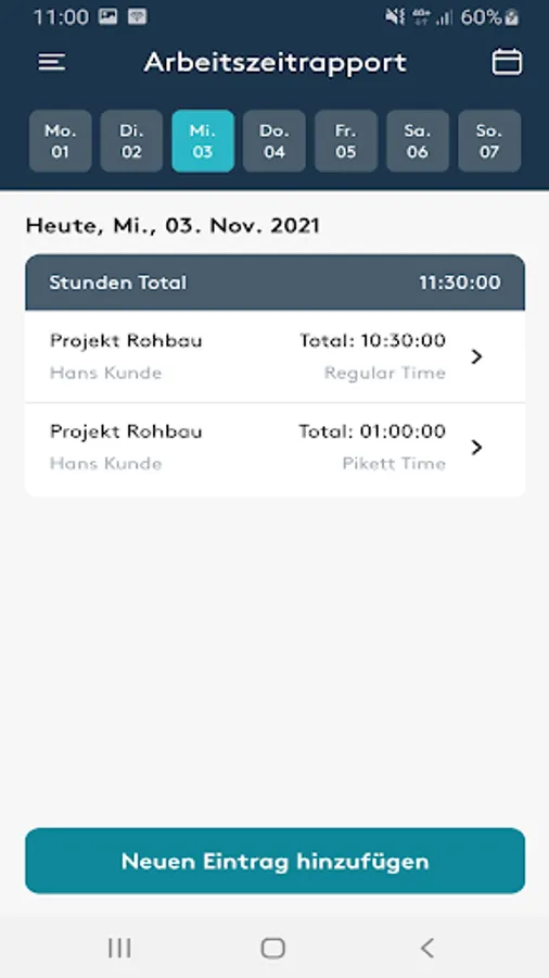 Employees conveniently record their work, vacation and break times, as well as additional expenses for ongoing projects, with just a few clicks on their smartphone.