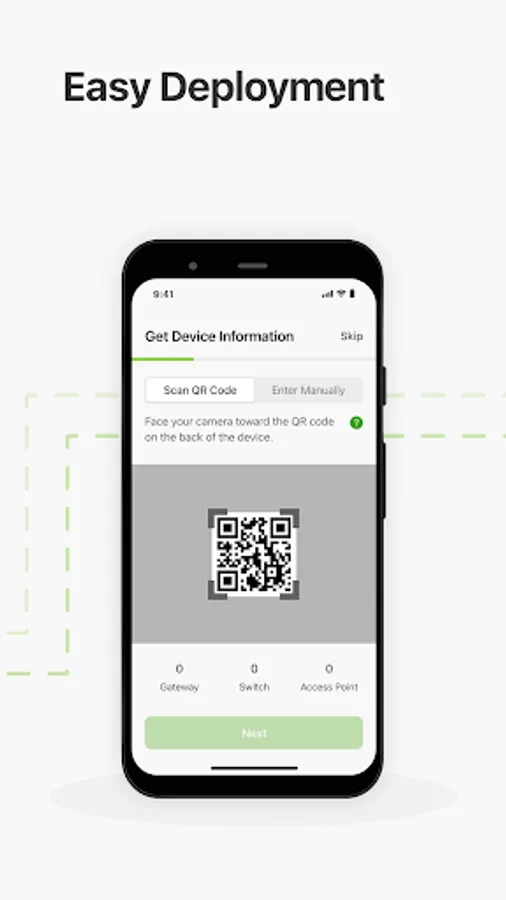 * Installation walk through wizard for creating org & site, adding devices (QR code or manually), setting up WiFi networks
