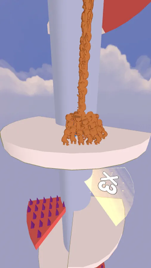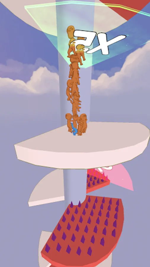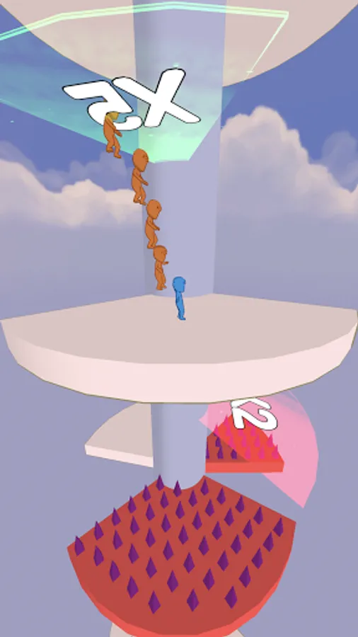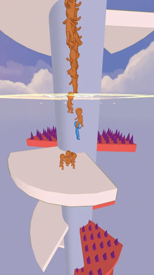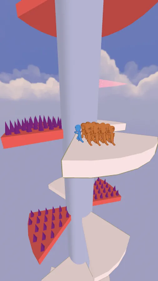 From the top of the tower, gather more minions to build your team, dodge the spiked traps, and reach the base of the tower.