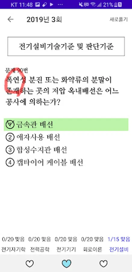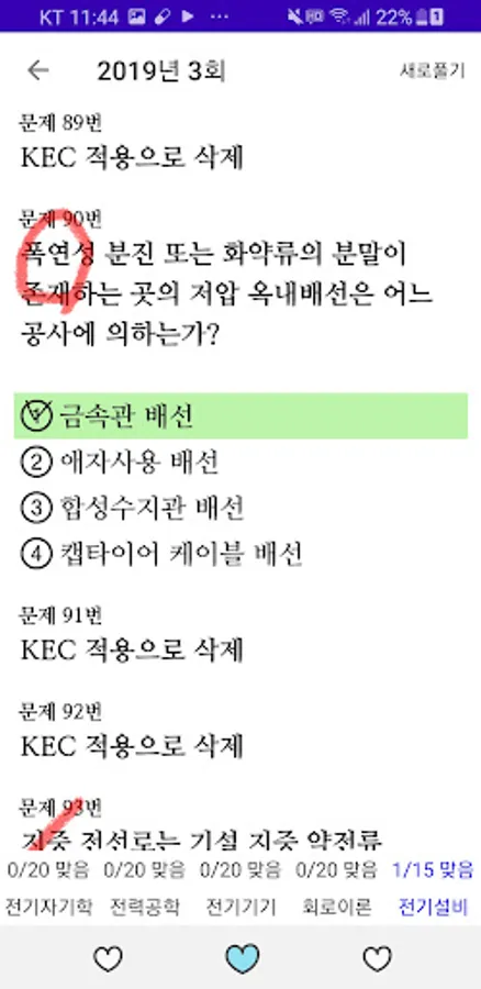 Previous questions to which the KEC (Korea Electrical Equipment Regulations) revision has been applied are recorded in two types: the test paper type and the one-question type.