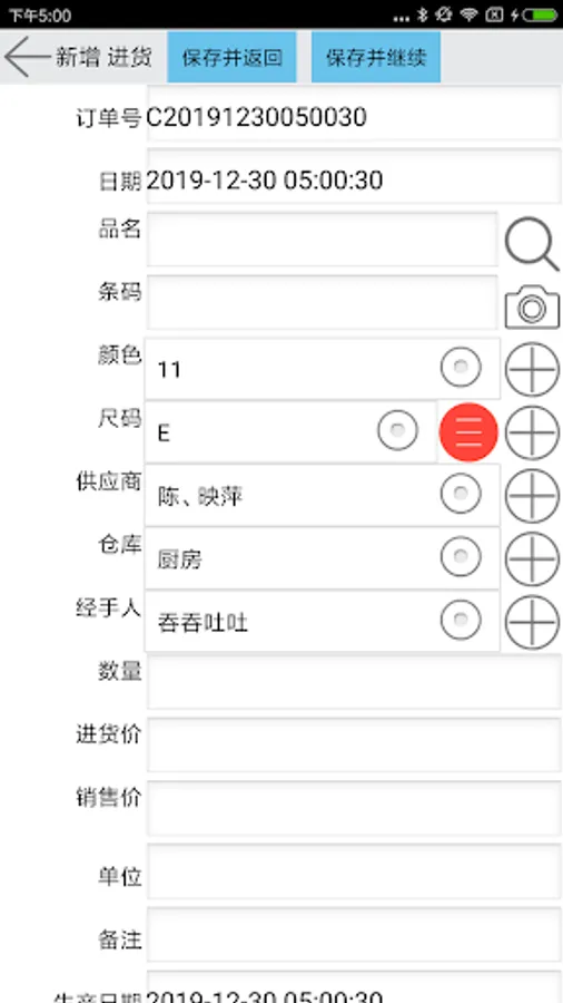 Manage incoming goods sales inventory
