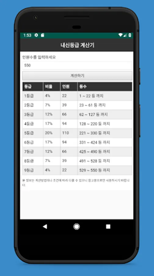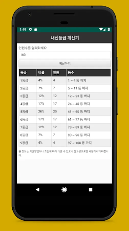 If you enter only the total number of people, you can intuitively check your grade, number of people, and rank.