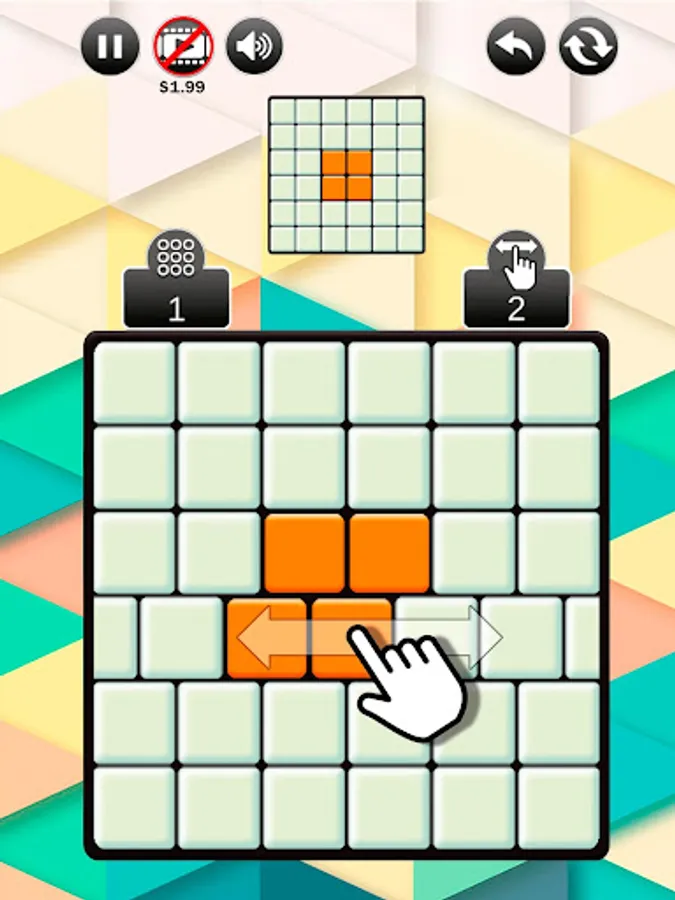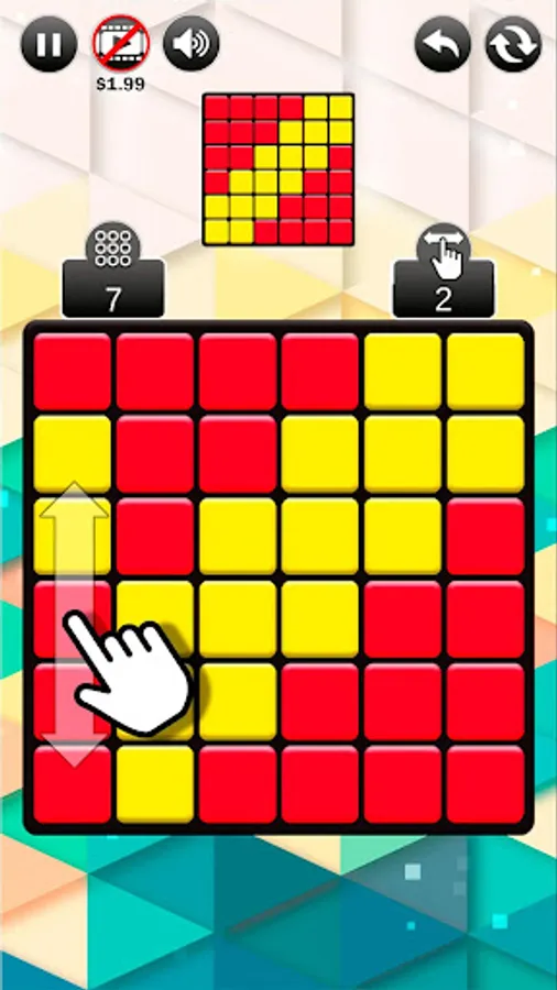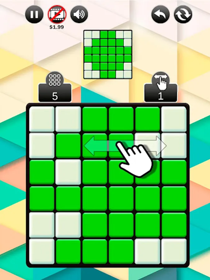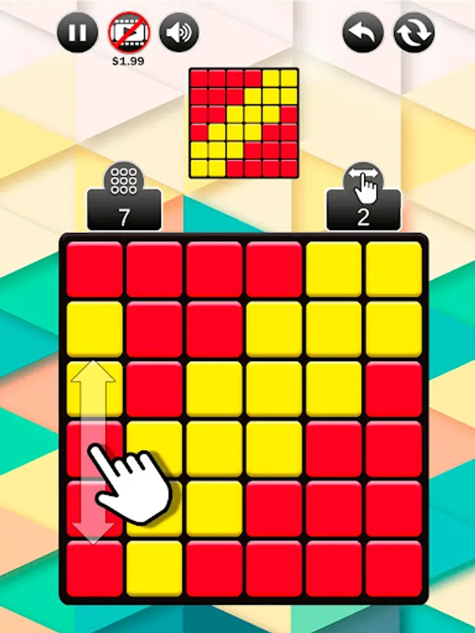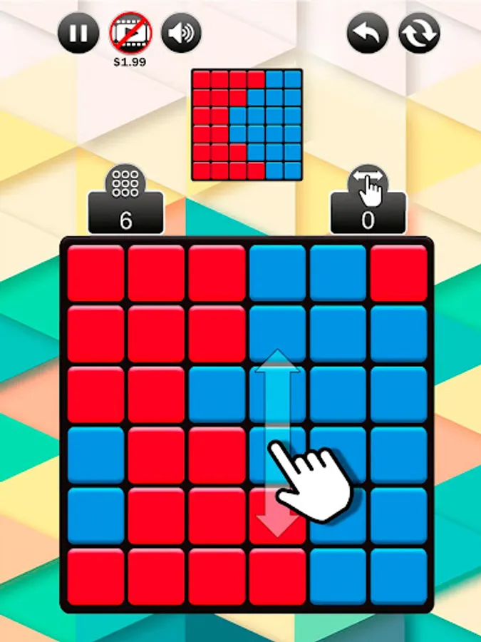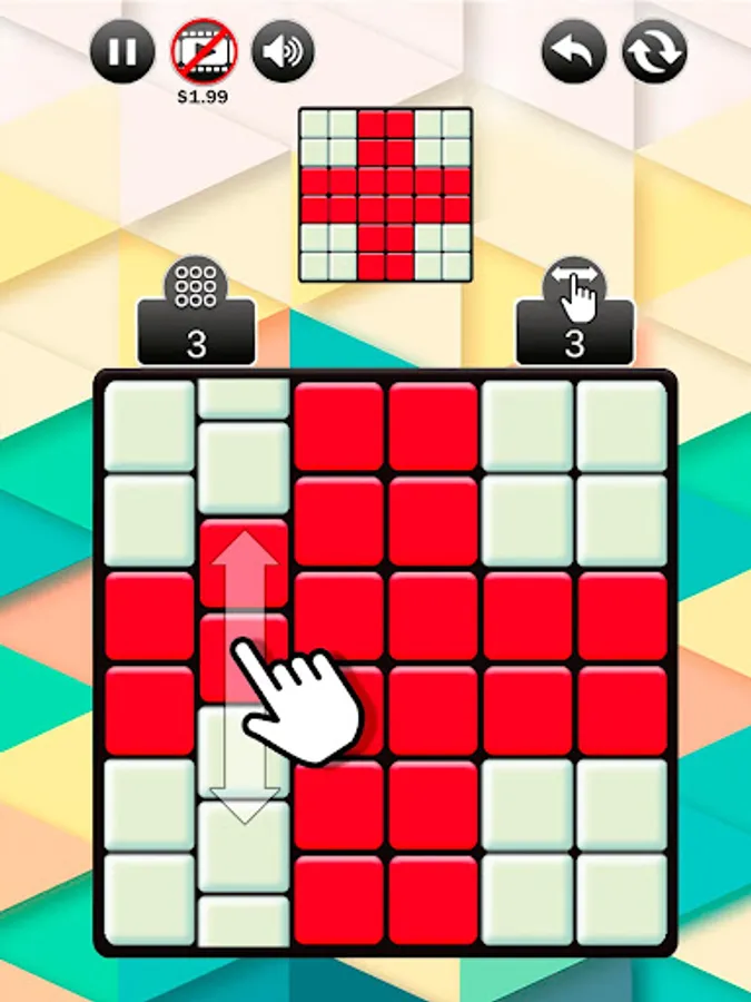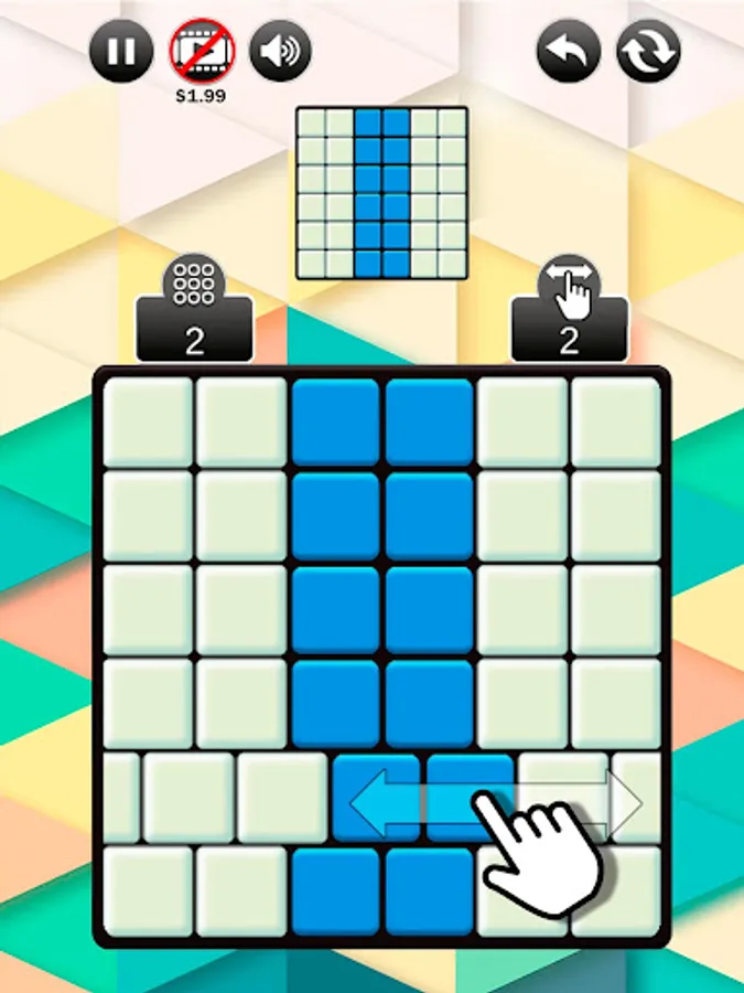 Slide block rows and columns, (vertically and horizontally), to match the given pattern.