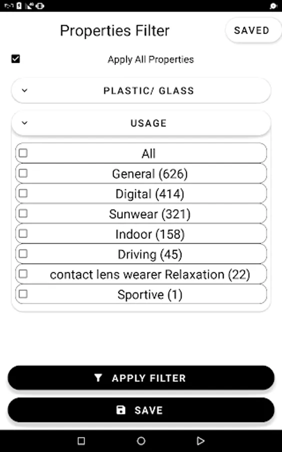 - Prescription lenses and frames of all kinds, specifications and functions