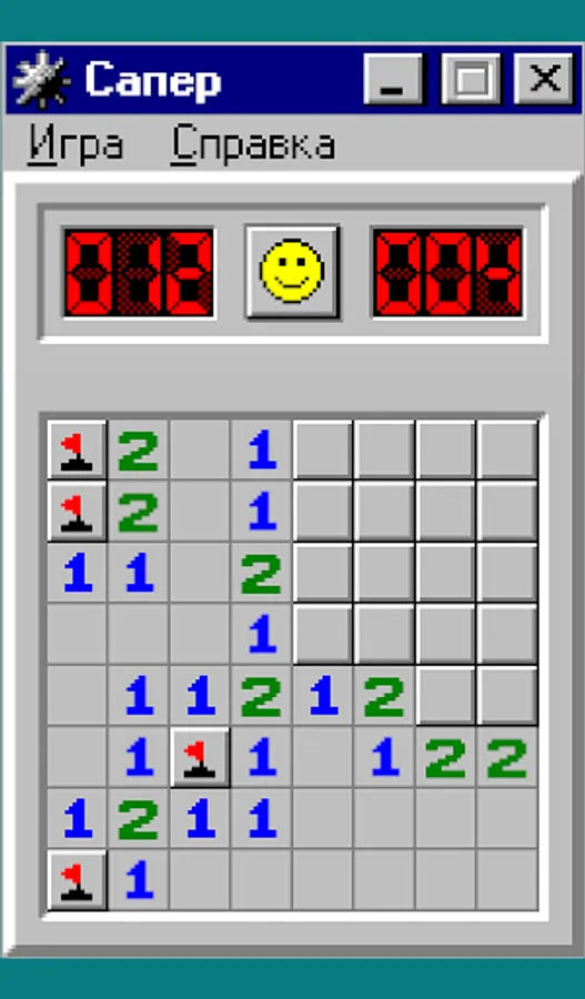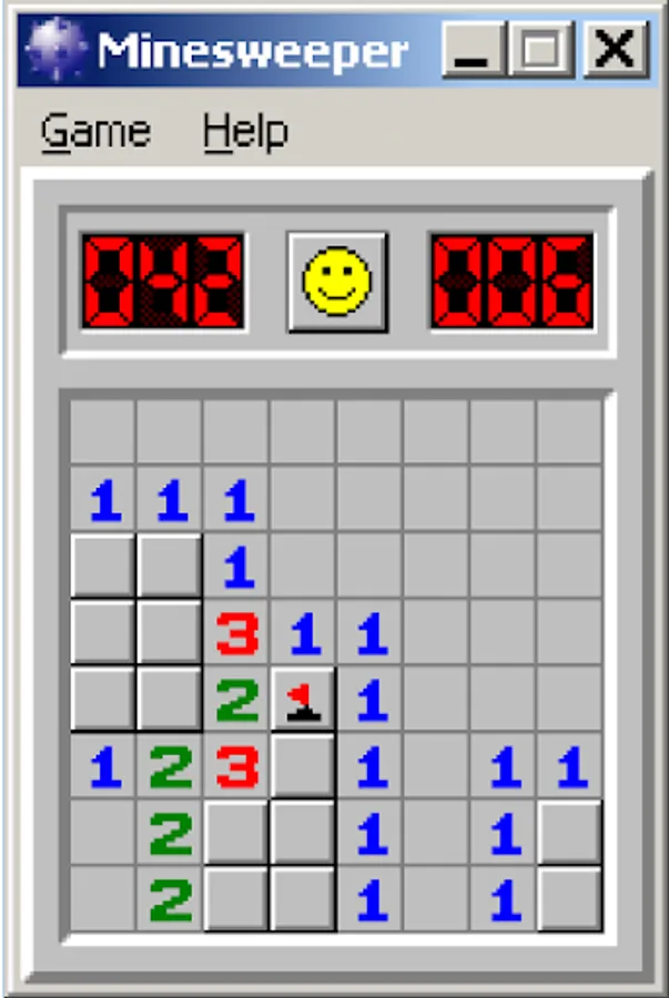 Minesweeper is a logic game where mines are hidden in a grid of squares. The object is to open all safe squares in the quickest time possible.