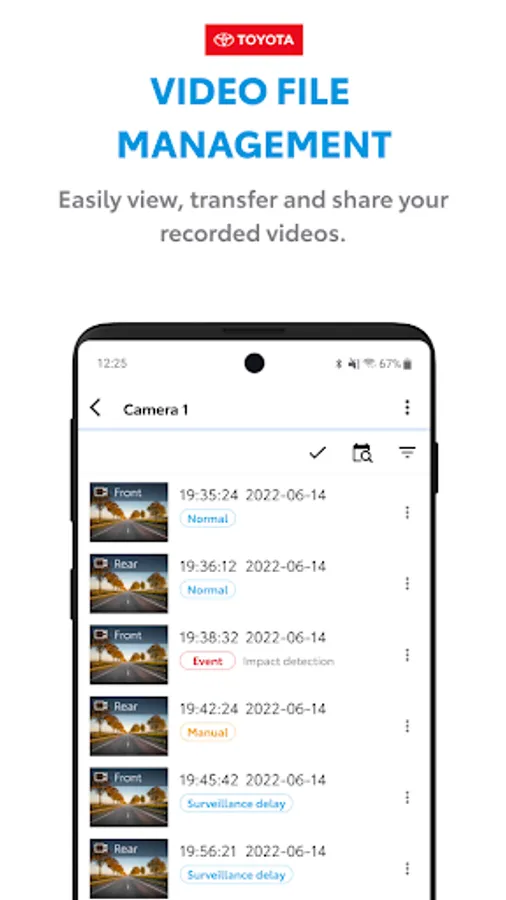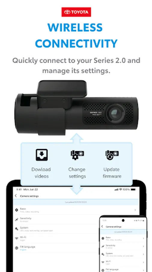 Download the Official Toyota Dash Camera (Series 2.0) App Viewer today and protect your vehicle safely.