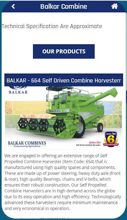 Balkar Combines started our business with the manufacture of agricultural implements in 1980 and have been always delivering our best products and service to our esteemed customers. we registered our company. We constantly improve our production technology which in turn constantly improves our product quality. In the industry, we have obtained the honor titles for many times. As a professional manufacturer of agricultural Multi Crop Harvester Combine, 4 x 4 Harvester Combine, Tractor Driven Combine, Track Combine, Straw Reaper, Laser Land Leveler, Multi Crop Thresher, Rotavator.