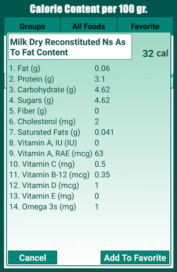 В разделе «Любимые продукты» вы можете сохранить часто используемые продукты.