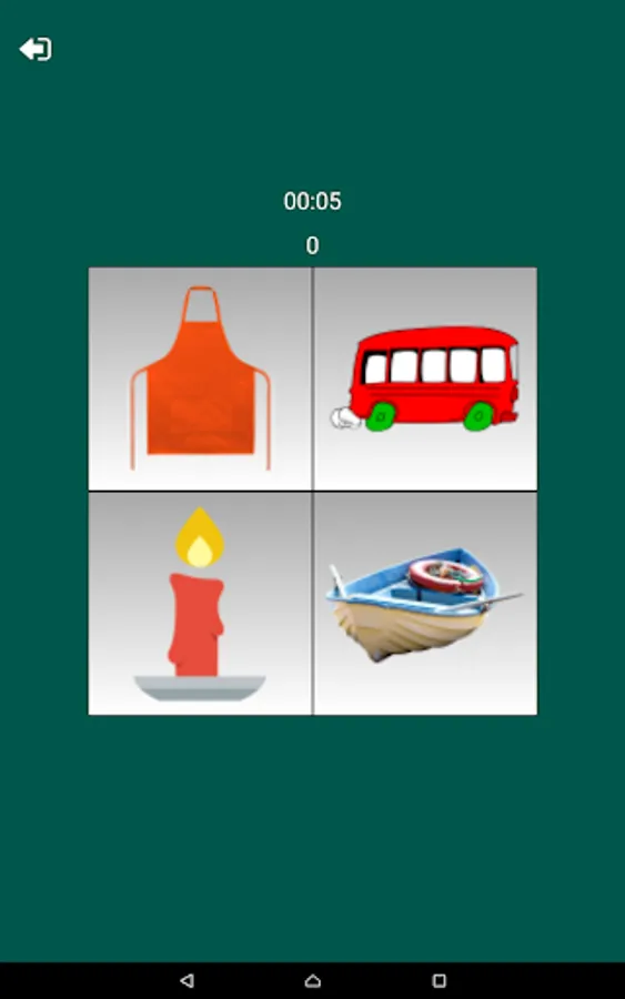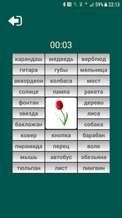 3. "Remember the words" - the table of randomly arranged words is replaced with set of pictures. Only one picture match one of the words, you need to find this picture.