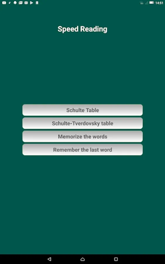 Our application is fundamentally different from the existing ones. In addition to the traditional "Schulte Table" simulator, which expands the field of view, we have other simulators which are based on a visual comparison between the word and the corresponding picture. Using this app you will learn to imagine the word image instead of pronouncing it to yourself.