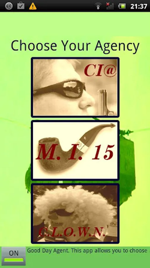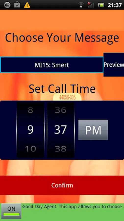 Choose your spy agency, your message, your ring tone and set the time you wish to be called.