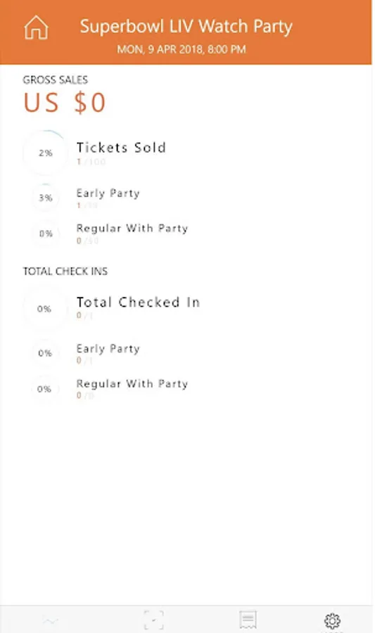 -User may also see number of attendees and events list and check number of checked users for the events.