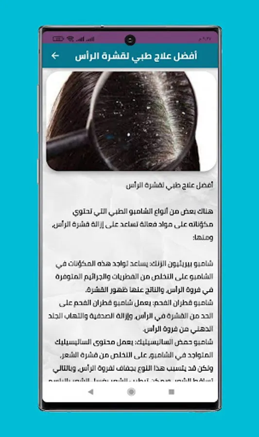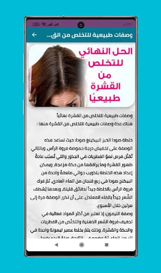 Download now the application of the best recipes for removing dandruff from hair and do not forget to rate the application with five stars to support us to continue to provide the latest recipes for hair care
