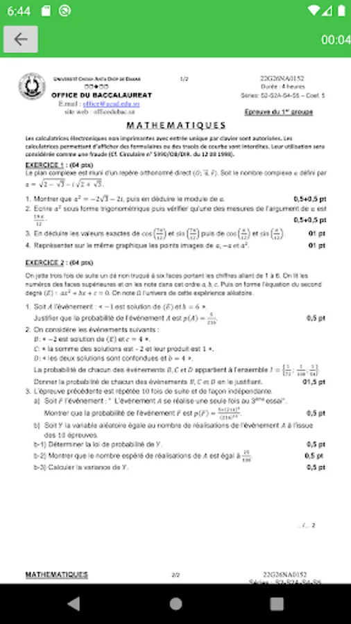 - Baccalaureate subjects from past years and their corrections