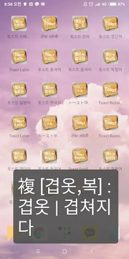 In the learning mode, words that have been checked to be memorized can be studied efficiently by preventing them from reappearing in the toast message or learning mode.