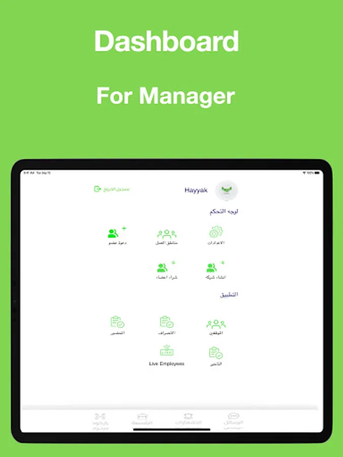 Hayyak is a new smart application to record the attendance and departure of workers in companies or institutions, and the ideal technological alternative to traditional jobs, where one touch can save a lot of time, effort and tasks, and complete and enjoyable control in the work environment for companies and modern businesses, it is a distinct and essential step in organizing many works and tasks Whether for workers or for employers.