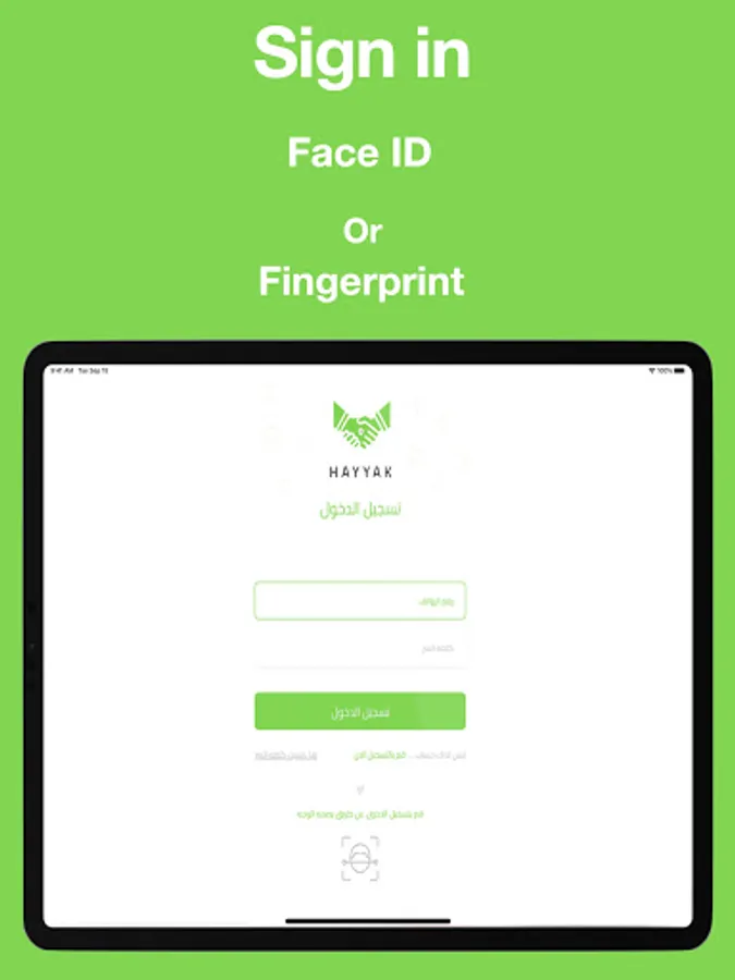 Hayyak Will Open You Up Horizons Of Luxury and Controlling In Using, Whether You are The Work Owner Or One Of The Workers, It Will Save you a lot of time and effort, and it Will Ensure That The Information is Accurate, Organized and Fully Recorded , and It Will Also Give You All Means Of Communication and Contact With The Work Staff, In Addition To Being an Excellent Alternative To The Signature System That May Be Subjected To Forgery Or Loss, and An Alternative To The Unsecured Fingerprint System That May Transmit Microbes and Infection Between Workers.